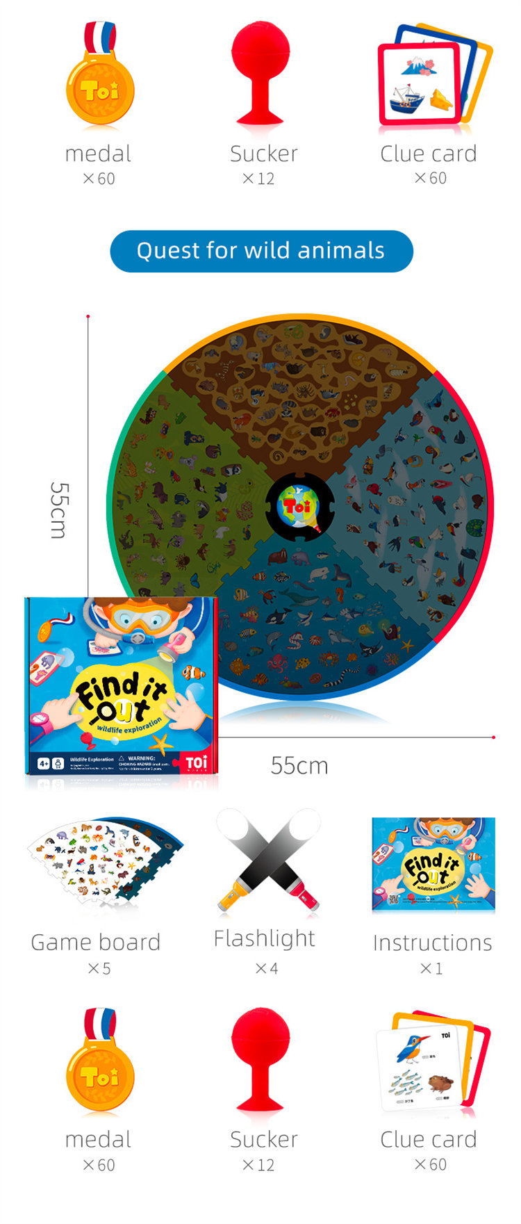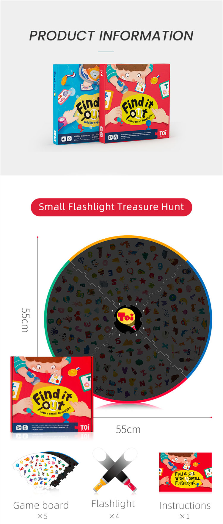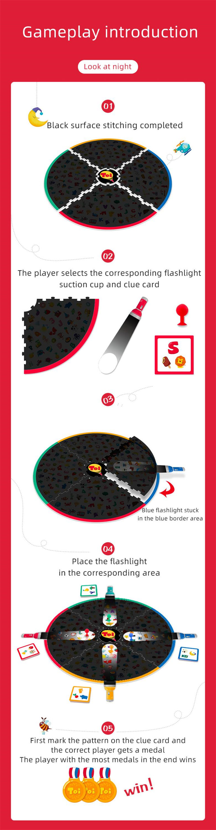 TOI Permainan papan anak-anak dan mainan pendidikan awal dengan senter kecil