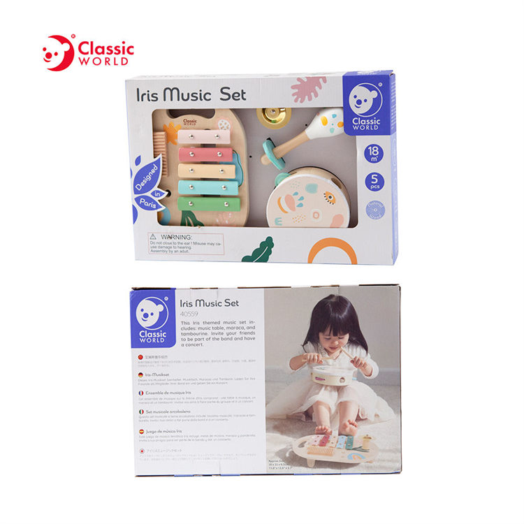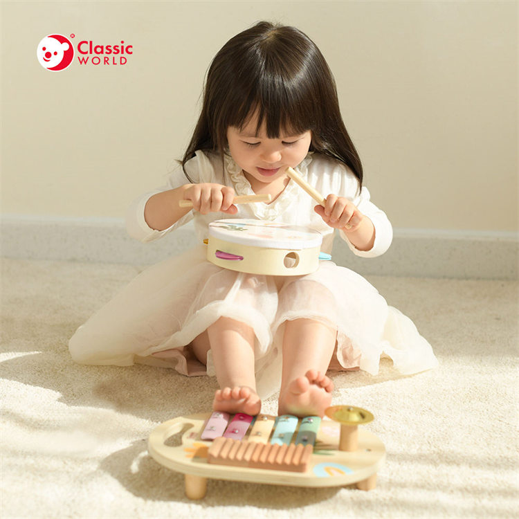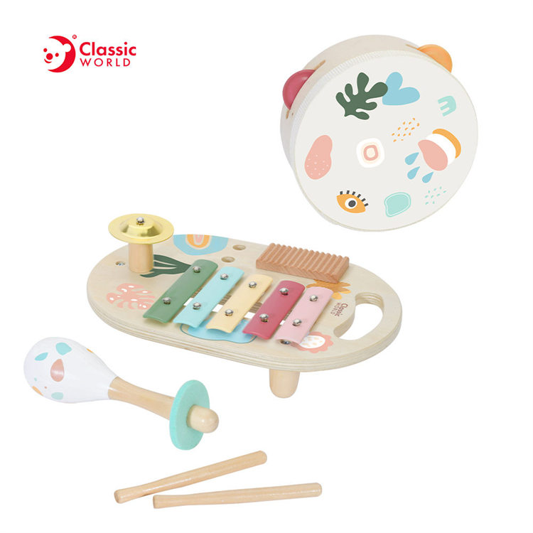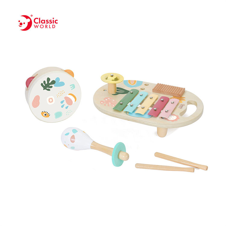 Classic World Tangan kayu drum xylophone anak instrumen set