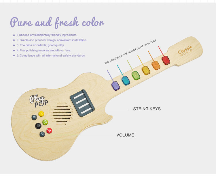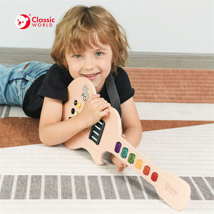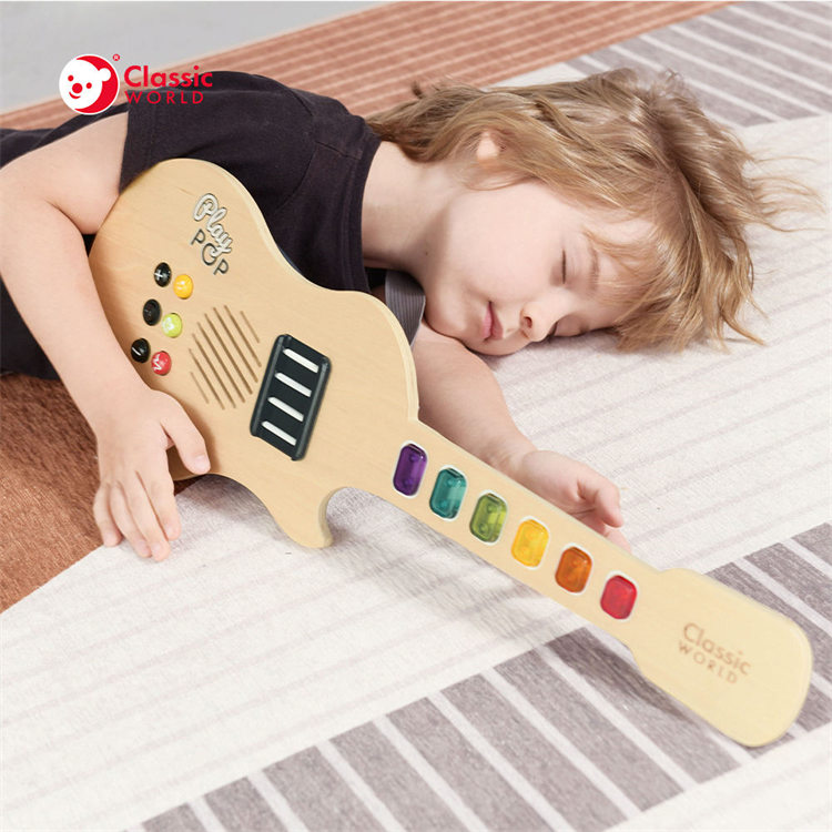 Classic World Gitar elektroluminescen kayu anak-anak