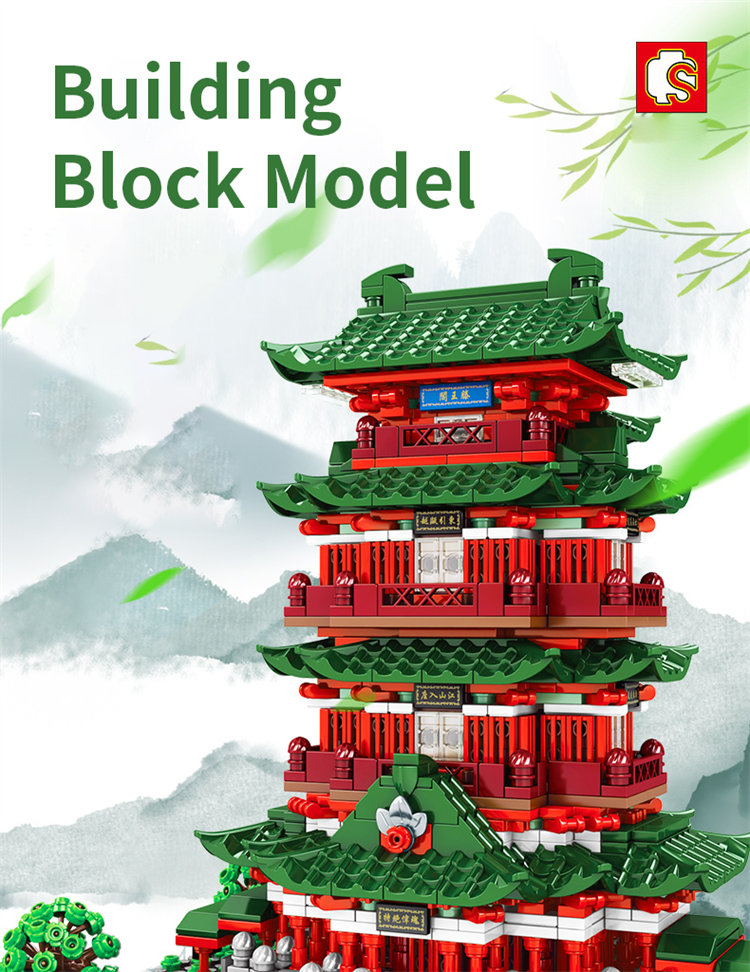 SEMBO China Tengwang Pavilion Street View Mini Building Block Model