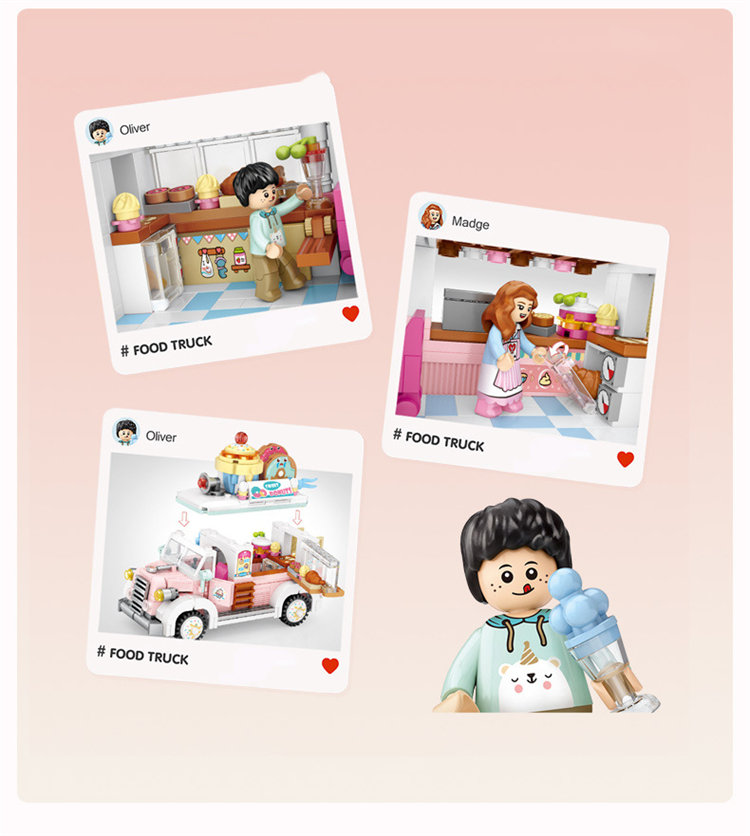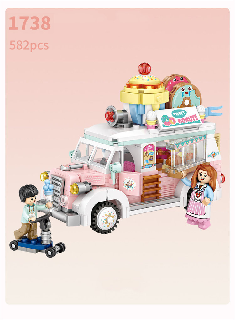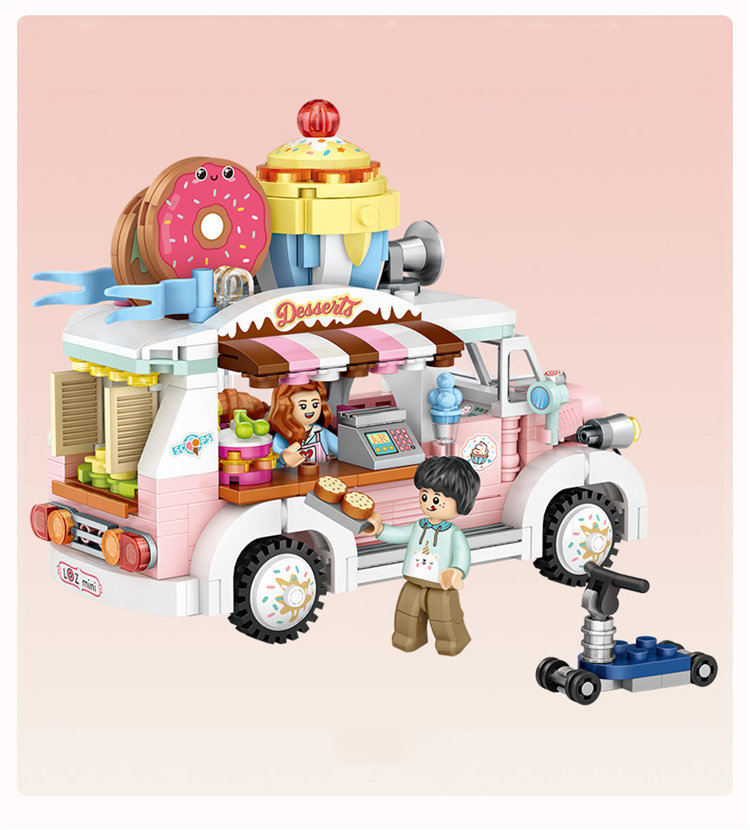 LOZ Batu bangunan kecil untuk truk pencuci mulut anak-anak